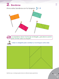 Al igual que hiciste con los barcos, harás banderas utilizando las figuras de tu tangram. Por cierto, tu bandera también tiene forma rectangular.