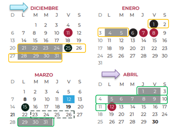 ¿Cuál periodo vacacional dura más, el de diciembre o el de Semana Santa? ¿Por qué?