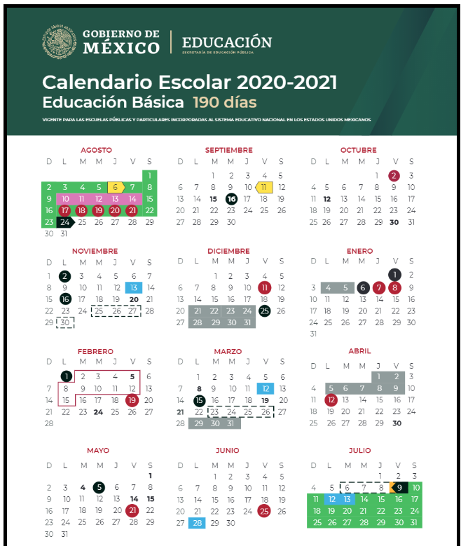 Este calendario escolar de 2020 inició en la tercera semana del mes de agosto y culmina en la primera semana del mes de julio del próximo año, 2021. Como ves un calendario escolar puede también considerar meses de dos años civiles distintos.