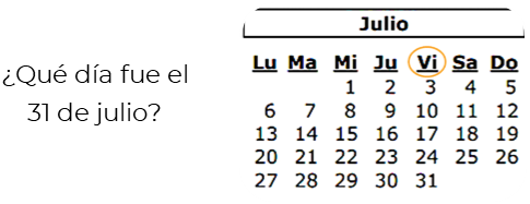 - A utilizar la información que proporciona un calendario para resolver problemas que implican determinar el inicio o el final de diferentes eventos.