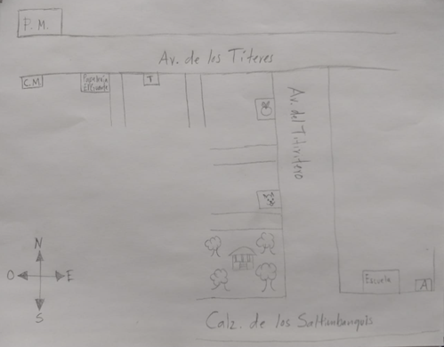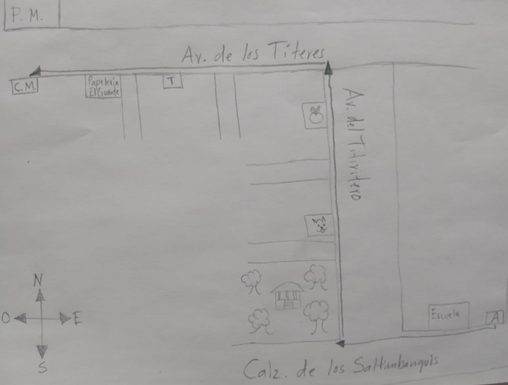 —Aníbal: Creo que podría ser algo que sea muy fácil de identificar… Tal vez una calle muy transitada, un edificio grande o tal vez una plaza, ¿verdad maestra?