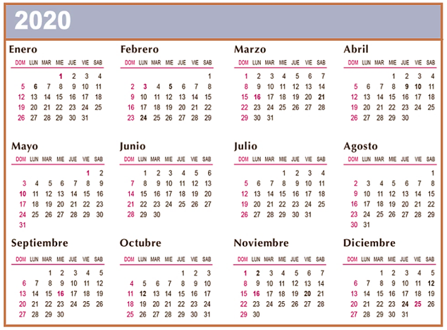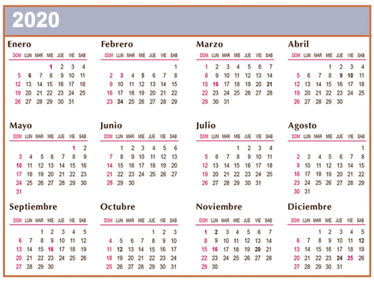 - Observa nuevamente el calendario del año civil 2020.