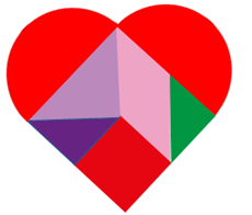 Coloca las partes en los espacios correspondientes para formar el corazón, después de colocar el círculo dividido por la mitad, coloca los trapecios y hasta abajo el cuadrado. Listo, tienes un corazón como el que hizo Alejandra para su mamá.