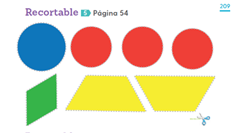 Ten a la mano tus figuras recortadas de la página 209 de tu libro de texto de Matemáticas. También es importante que abras tu libro de matemáticas en la página 54.