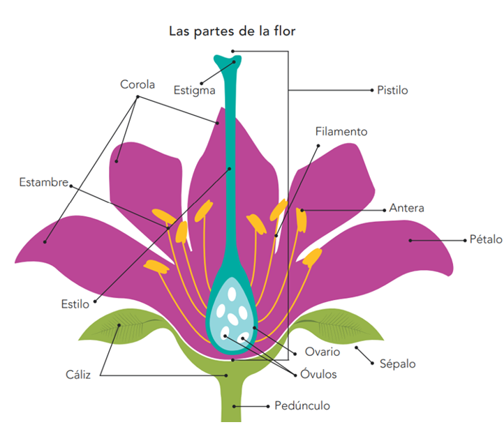 Observa la siguiente imagen donde se presentan las partes de una flor: