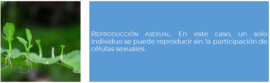 Al sembrar el tallo de un geranio, malvón o clavel en condiciones adecuadas, crece una nueva planta. Muchas plantas pueden reproducirse por medio de los tallos, hojas y raíces, en este tipo de reproducción no hay unión de las células sexuales masculinas con las femeninas, por eso se le llama reproducción asexual.