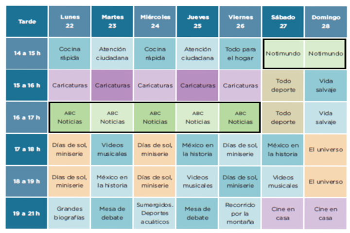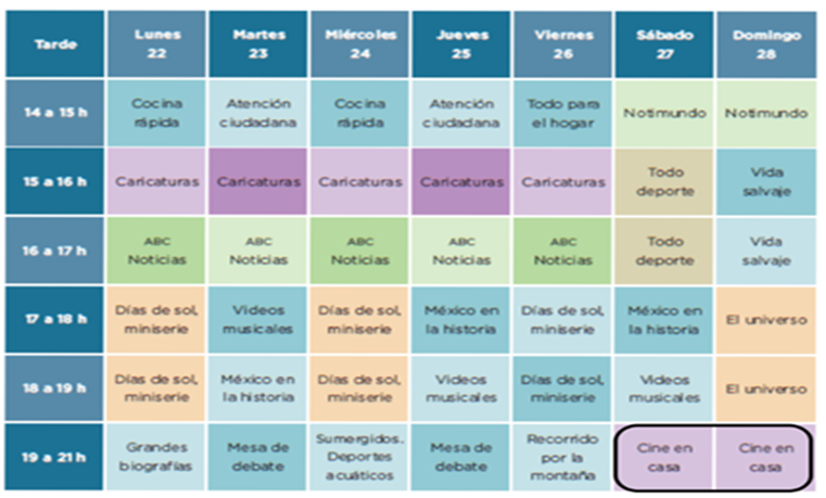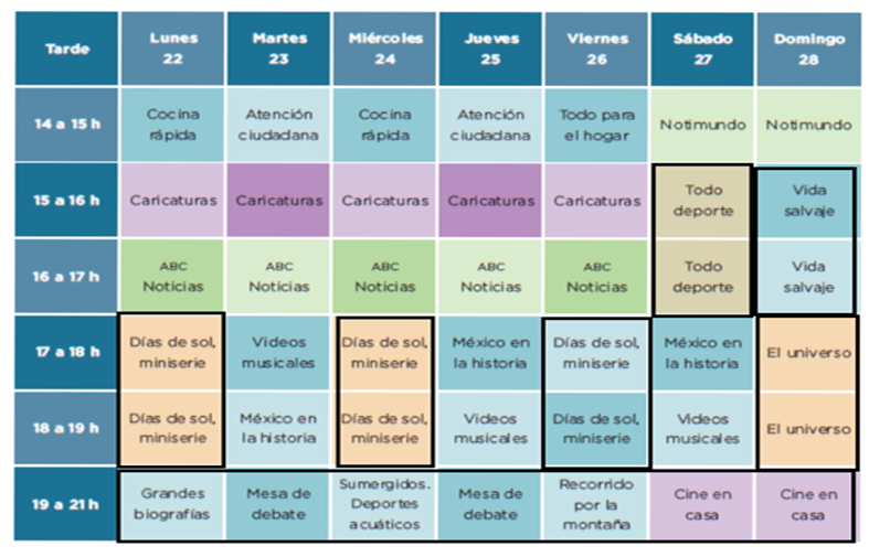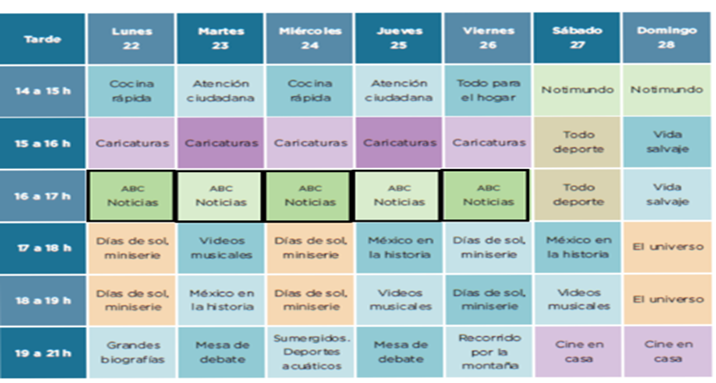 Observa el cuadro e identifica que días se trasmite México en la historia.