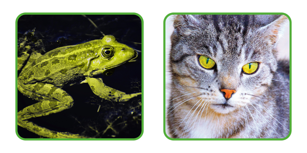 ¿En qué color los colocaras? el gato, el elefante y el conejo, deben de estar en el grupo de los grises; la gallina y el caracol en el grupo de marrón; la rana y la tortuga en el grupo verde.