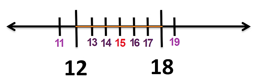 Bien, si cuentas cuántas unidades hay entre el 12 y el 18, tienes seis: 13, 14, 15, 16, 17 y 18, por lo que a la mitad de la distancia entre 12 y 7 hay 3 unidades.
