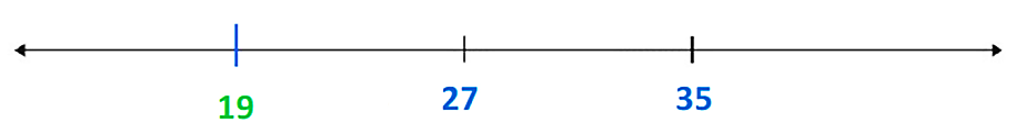 Como hay 8 unidades de 27 a 35 lo primero que hizo fue ubicar el 19 a la izquierda del 27, marcando un segmento de 8 unidades, porque si a 27 le resto 8 me da 19.