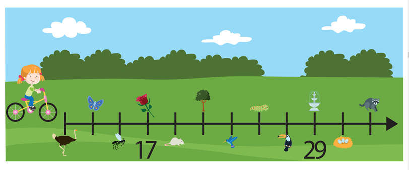 Si observas el recorrido, sólo tiene dos números claramente escritos, así que, ¿Cuántas unidades hay del 17 al 29? 18, 19, 20, 21, 22, 23, 24, 25, 26, 27, 28, 29… ¡12 unidades!