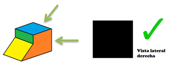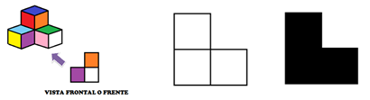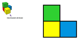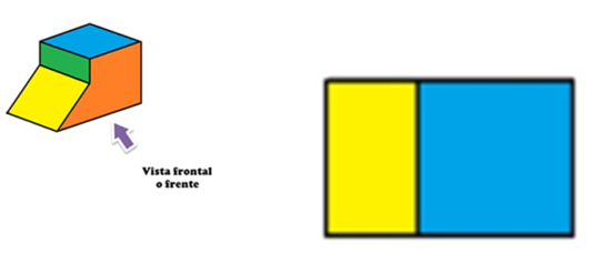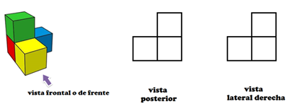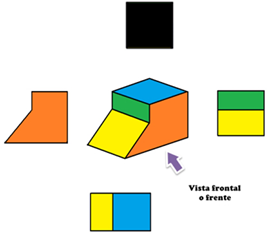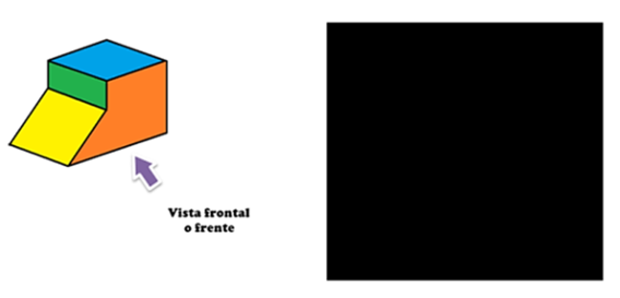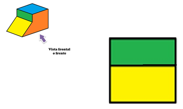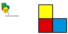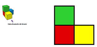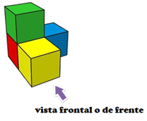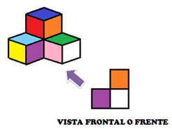 Es la vista frontal. Si te colocas de frente a la formación de cubos, es la vista que obtendrás, para dibujarla, se emplearan cuadrados que representan las distintas caras de los cubos.