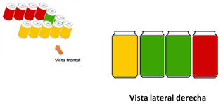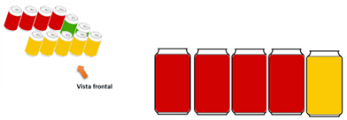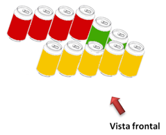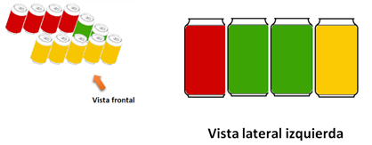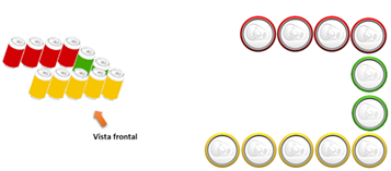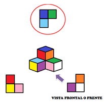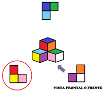 Como ves, se trata de una formación de cuatro cubos: Uno verde, uno azul, uno rojo y uno amarillo, la flecha indica la vista frontal.