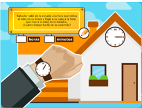 Resuelve el siguiente ejercicio: Salvador salió de la escuela a la hora que indica el reloj de su muñeca y llegó a su casa a la hora que marca el reloj de la derecha ¿cuánto tiempo tardó en su recorrido?