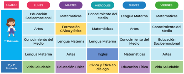 Este es el horario de Aprender en Casa para que veas las materias que se repiten en la semana. Es muy importante que estén organizadas.