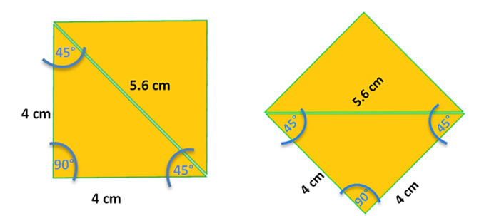 Como ves, las medidas de lados y ángulos se mantienen y por lo tanto siguen siendo dos figuras distintas: Un rombo y un cuadrado, por ello se puede afirmar que una figura mantiene sus propiedades al cambiar su posición.