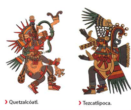 Dioses Quetzalcóatl y Tezcatlipoca.