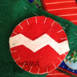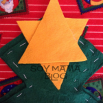 Como el diseño que eligió Maia en su momento formaba las ramas en vez de algo sencillo como la forma triangular (para qué hacerlo sencillo si podemos complicarlo, no hija?) opté por poner doble el tramo de fieltro verde, así solo tenía que trazar la forma de un solo lado. Te puede no quedar de manera exacta pero no importa, le da más aire de árbol navideño.