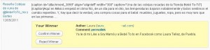 Luego de un par de días de retraso por estar o enferma, hoy realice el sorteo mediante el plugin “And The Winner Is” y aquí les dejo la captura con el nombre de la ganadora: