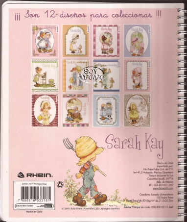 ¿Puedo darte un poquito de envidia Viviana? Aun conservo los álbumes de cromos que se editaron en España de Sarah Kay y Rainbow Brite. ¡Y completos! El de Sarah Kay fue mi primer coleccionable y le tengo mucho cariño. Costaban en aquella época los sobres de cromos una fortuna ¡10 pesetas! (el equivalente hoy en día a 6 céntimos de euros, no sé como estará el cambio a pesos mejicanos) pero es que eran autoadhesivos, y las colecciones normales costaba el sobre 5 pesetas (estoy hablando de hace más de 25 años) pero ya podías tener pegamento en casa porque los cromos eran de cartón, no pegatinas. La mayoría de los diseños que aparecen en la libreta los tengo en cromo y son preciosos. Si te pasas un día por España de vacaciones, quedamos a tomar un café y te los enseño 😉