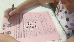 Aquí, completando la hoja